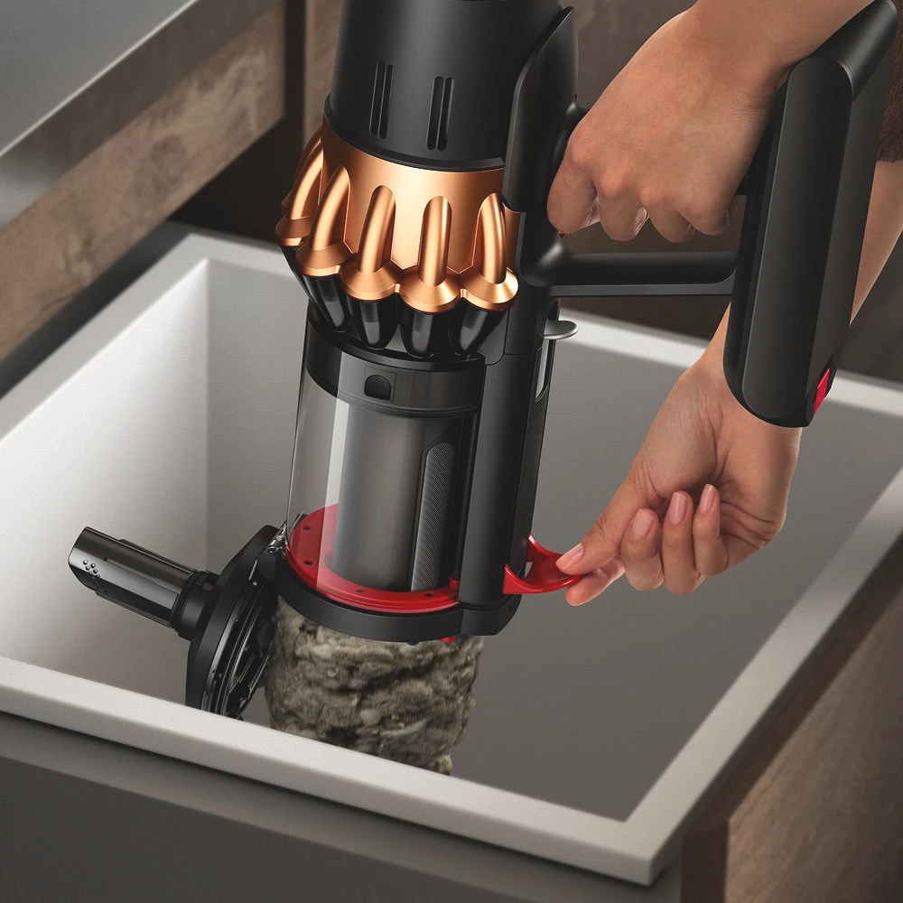 Dyson V16 Piston Animal, markanın alışılmış modern çizgisini koruyan, hafif ve dengeli bir tasarımla geliyor. Gövde ağırlığının optimize edilmesi sayesinde uzun temizlik seanslarında bile bileği yormayan bir kullanım sağlıyor. Şeffaf hazne yapısı kir seviyesinin kolayca takip edilmesini sağlarken, tek tuşla boşaltım mekanizması kullanımı oldukça pratik hale getiriyor.